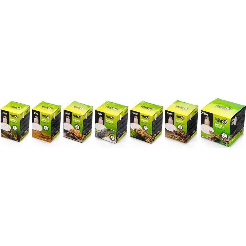 - La lampe céramique permet d’obtenir une température ambiante sans émettre de lumière, ce qui n’affecte pas le cycle jour/nuit. Il est impératif d’utiliser un thermostat pour réguler la température. Afin d’éviter tout risque de brûlure, veillez à ce que votre animal ne puisse pas atteindre la lampe. La lampe céramique peut avoir une durée de vie supérieure à 2 ans, en plus d’être résistante à l’humidité.