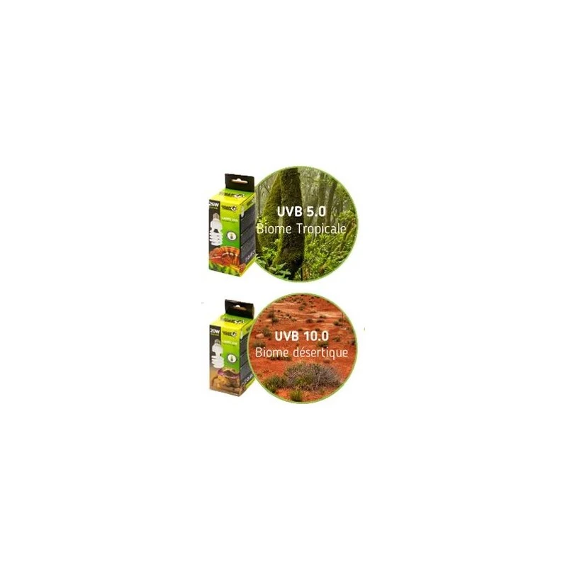 - Cette lampe UVB d’indice 5.0 conviendra aux espèces dîtes tropicales et la 10.0 aux espèces désertiques.