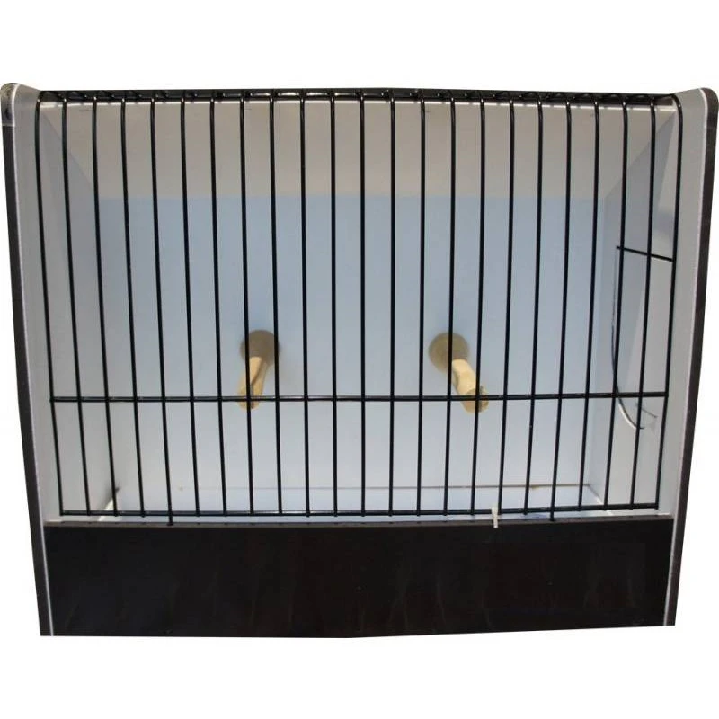 Cage d’exposition pour perruches avec facade noire. Entièrement en plastique, donc plus facile d’entretien et plus besoin de repeindre.