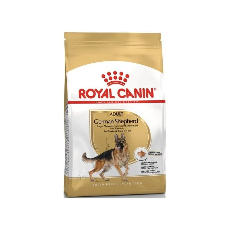 ROYAL CANIN® German Shepherd Adult est spécialement formulé pour répondre à tous les besoins nutritionnels de votre chien adulte et convient aux Bergers allemands de 15 mois et plus. ROYAL CANIN® German Shepherd Adult favorise une santé digestive optimale grâce à sa teneur en protéines L.I.P. hautement digestibles et à une sélection de fibres spécifiques qui limitent la fermentation intestinale et contribuent au maintien du bon équilibre de la flore intestinale. ROYAL CANIN® German Shepherd Adult est spécialement conçu pour aider à renforcer le rôle de barrière de la peau. Cette formule spécifique contient également des acides gras oméga-3 EPA et DHA, des nutriments qui ont pour fonction de préserver et de nourrir la peau et le pelage de votre chien. Le Berger allemand est connu pour son tempérament vif et sa forte participation aux activités. C’est pourquoi un régime alimentaire contenant des nutriments qui favorisent la santé des articulations peut contribuer à maintenir le haut degré d’activité de cette race. C’est pourquoi ROYAL CANIN® German Shepherd Adult est enrichi en nutriments spécifiques afin de préserver la santé des os et des articulations. De plus, cette formule contribue également au maintien du poids de forme de votre chien.