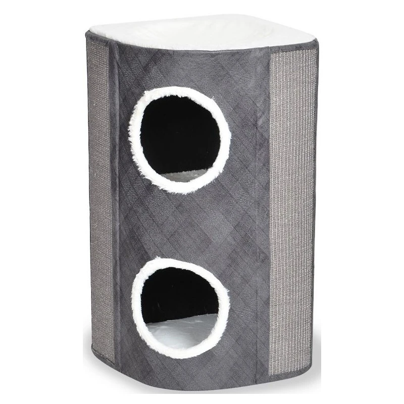 Le griffoir Berta de duvoplus est un griffoir élégant qui est parfaitement adapté à un coin ou à un autre endroit dans la maison. Le griffoir est résistant, dispose de 2 grandes alvéoles (20 cm de diamètre) et de larges compartiments. Le griffoir est donc adapté également aux chats de grande taille. La finition est raffinée avec des tissus doux à l`intérieur et à l`extérieur. Votre chat pourra aiguiser ses griffes à sa guise sur les tapis en sisal intégrés des deux côtés. Sans oublier un hamac doux et confortable qui est l`endroit idéal pour chaque chat.