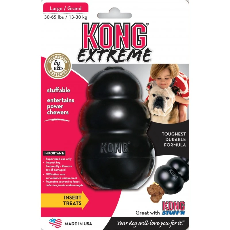 KONG Extreme représente la version la plus résistante de notre jouet KONG original. Sa matière en caoutchouc noir ultra-robuste et ultra-résistante est recommandée pour les mâchoires les plus puissantes