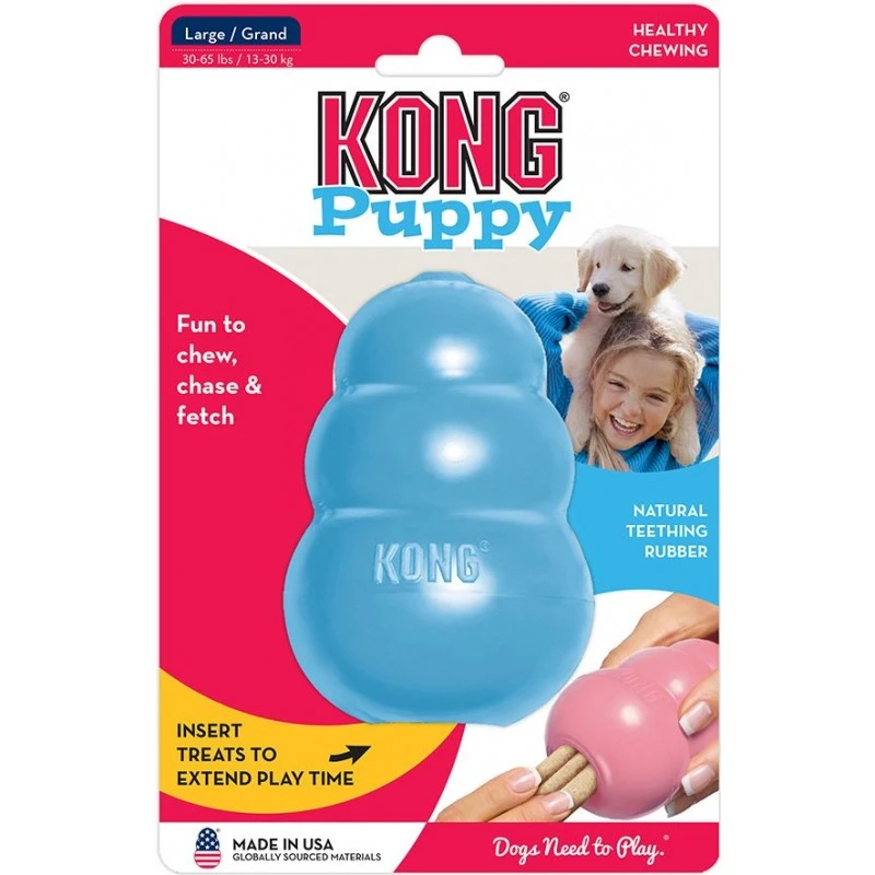 Le jouet KONG Puppy pour chiots a été élaboré spécialement pour les dents de lait des chiots. La formule unique de son caoutchouc 100 % naturel est la plus souple de la gamme de jouets en caoutchouc KONG. Conçu pour s’adapter aux 28 dents de lait des chiots, il aide à gérer leur mastication de façon appropriée tout en offrant une stimulation et en satisfaisant leur instinct naturel. Le rebond déconcertant est idéal pour les chiots qui veulent simplement s’amuser. Un KONG Puppy farci de friandises occupe les tout petits constamment en action tout en vous permettant de pourvoir à vos nécessités. Vous cherchez un moyen de dresser votre chien à rester dans sa niche ou son panier, ou bien vous voulez que les séances de jeu soient plus intéressantes ?