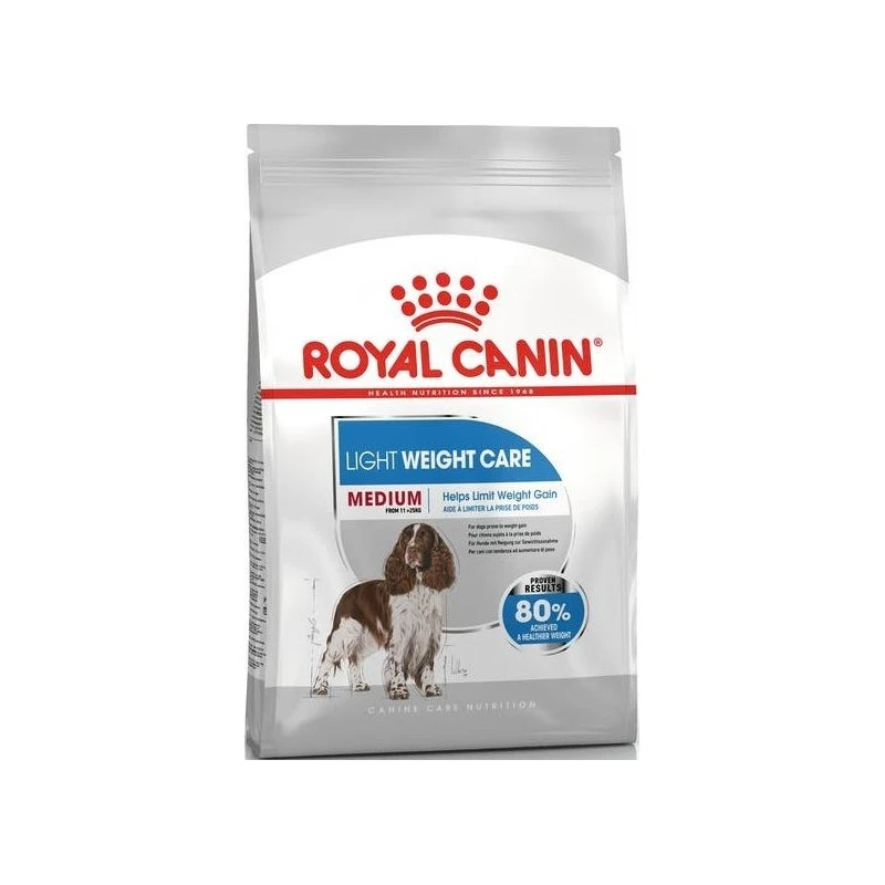 Beaucoup d’animaux domestiques sont en surpoids et souffrent d’une pression excessive sur leurs articulations, ce qui nuit à leur état de santé général. Aidez votre chien à retrouver la forme en lui offrant une alimentation complète, délicieuse et rassasiante. ROYAL CANIN® Light Weight Care Medium convient aux chiens pesant jusqu’à 25 kg. Cette recette savoureuse est riche en protéines hautement digestibles pour assurer le maintien de la masse musculaire de votre chien tout en réduisant son apport en matières grasses et en calories. Pour aider votre animal à se sentir plus léger sur ses pattes et éviter les complications de santé liées aux kilos en trop, cette formule contient beaucoup moins de graisses alimentaires. Ne vous contentez pas de nous croire sur parole : testé scientifiquement, 80% des chiens légèrement en surpoids ont atteint un poids plus sain en 8 semaines avec ROYAL CANIN® Light Weight Care Medium. Cela signifie que la formule ROYAL CANIN® Light Weight Care Medium a fait ses preuves.