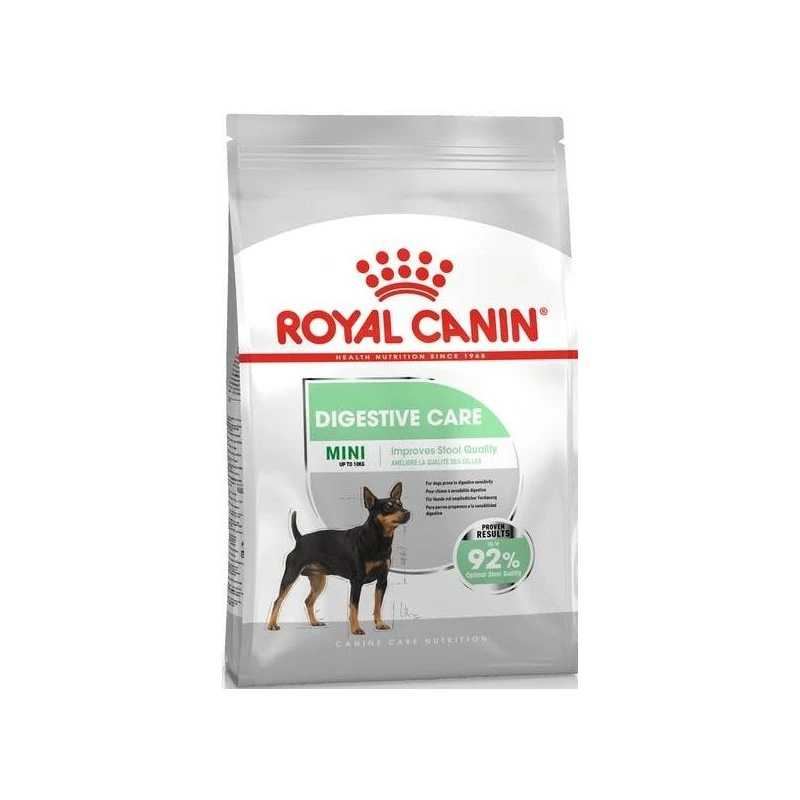 L’inconfort digestif est pénible pour tout le monde, y compris pour votre chien. Une alimentation contenant des nutriments de haute qualité (spécifiquement sélectionnés pour améliorer le confort intestinal et l’assimilation) peut contribuer au renforcement de l’intestin de votre chien. Adaptée aux chiens pesant jusqu’à 10 kg, la recette très savoureuse de ROYAL CANIN® Digestive Care Mini est spécialement conçue pour les chiens ayant une sensibilité digestive. Les petits chiens ont tendance à avoir des selles plus dures, et peuvent même souffrir de constipation. La formule ROYAL CANIN® Digestive Care Mini prend tout cela en compte. L’inclusion d’un mélange parfaitement équilibré de fibres solubles et insolubles permet de limiter la fermentation tout en favorisant le transit intestinal exactement là où c’est nécessaire. La gamme de prébiotiques présente dans la formule aide à renforcer la santé de la flore intestinale. Royal Canin prend les protéines très au sérieux. Nous utilisons exclusivement des protéines de qualité supérieure et les adaptons aux besoins de votre chien C’est pourquoi la formule ROYAL CANIN® Digestive Care Mini comprend des protéines L.I.P hautement digestibles. Ps. Des années d’expérience et une amélioration continue nous permettent une connaissance approfondie des meilleures méthodes de production. Notre technique de cuisson unique en est un parfait exemple. En effet, elle permet d’assurer la disponibilité des nutriments pendant la digestion. Nos contrôles qualité rigoureux attestent de cette haute digestibilité. Notre programme nutritionnel Digestive Care est disponible sous deux formes : en croquettes croustillantes et en délicieuse pâtée conditionnée en sachet fraîcheur, les deux étant parfaitement équilibrées sur le plan nutritionnel et tout à fait complémentaires. Pourquoi ne pas essayer la pâtée comme accompagnement des croquettes ? Ne vous contentez pas de nous croire sur parole : les résultats de ROYAL CANIN® Digestive Care Mini montrent un développement optimal de la qualité des selles allant jusqu’à 92 %, preuve irréfutable d’un estomac sain. Cela signifie que l’aliment ROYAL CANIN® Digestive Care Mini a fait ses preuves.