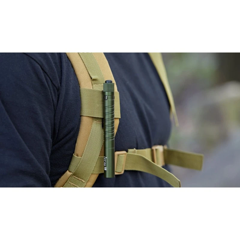 La i3T Plus est une lampe en forme de stylo EDC à interrupteur arrière alimentée par deux piles alcalines AAA. Sa LED hautes performances, associée à une lentille optique PMMA, produit un faisceau doux et équilibré avec un mode de 250 ou 15 lumens.