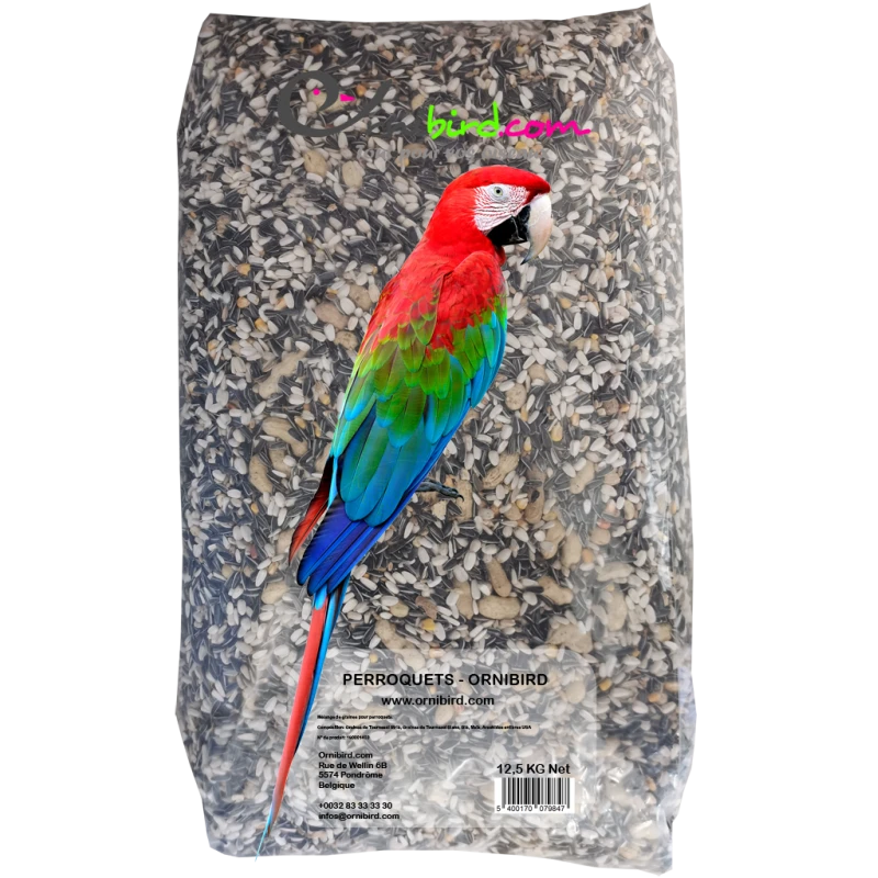 Composition: Graines de Tournesol Strié, Graines de Tournesol Blanc, Blé, Maïs, Arachides entières USA