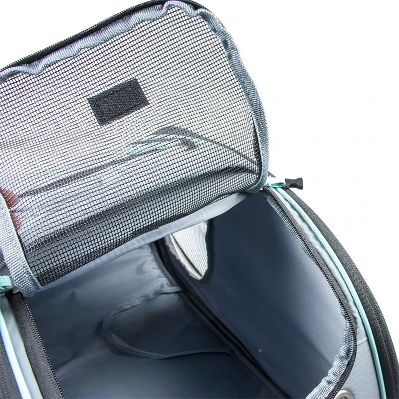 Ce sac à dos de trekking super léger et confortable All-in-One Oslo `Buddies on the gooo` vous permet d`emmener votre chien ou chat partout où vous allez, même à vélo. Ce sac de qualité supérieure est muni de compartiments de rangement pratiques et même d`un compartiment pour garder des aliments ou de l`eau au frais. Les trous de ventilation à l`avant et sur les côtés du sac font que votre animal de compagnie bénéficie en permanence d`une quantité suffisante d`air frais. Vous pouvez ouvrir facilement ce sac à dos pratique grâce aux deux fermetures éclair latérales. Le sac est également muni d`une fixation pour collier, d`une housse de protection contre la pluie et d`une sangle pour y fixer un harnais.