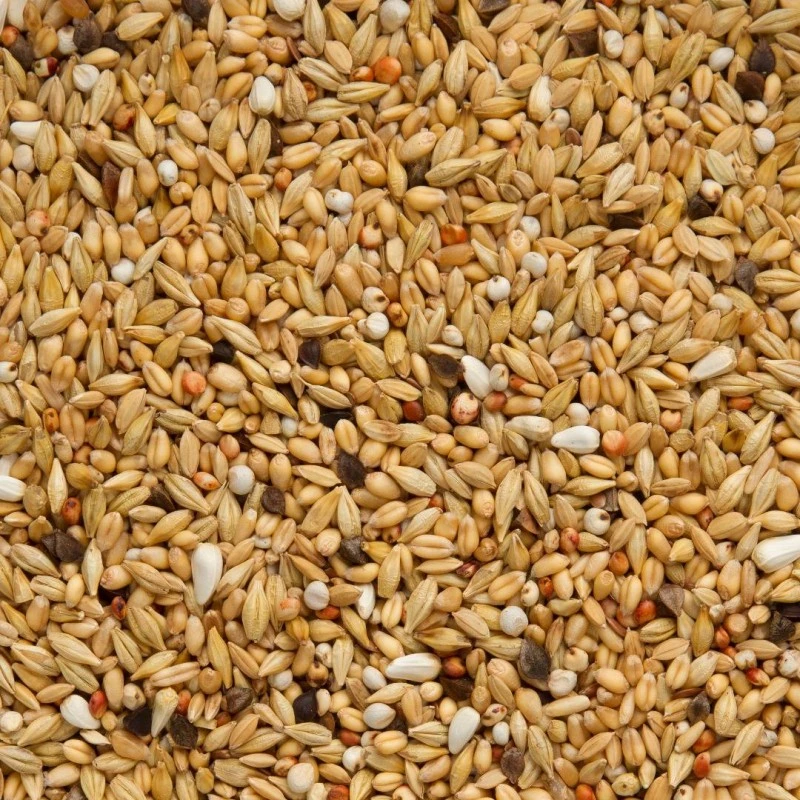 Orges 32,5%, froment blanc 32,5%, riz paddy 12%, dari extra blanc 7,5%, sorgho extra rouge 5%, avoine pelée 3%, cardi 2,5%, graines de lin 2,5%, sarrasin 2,5%
