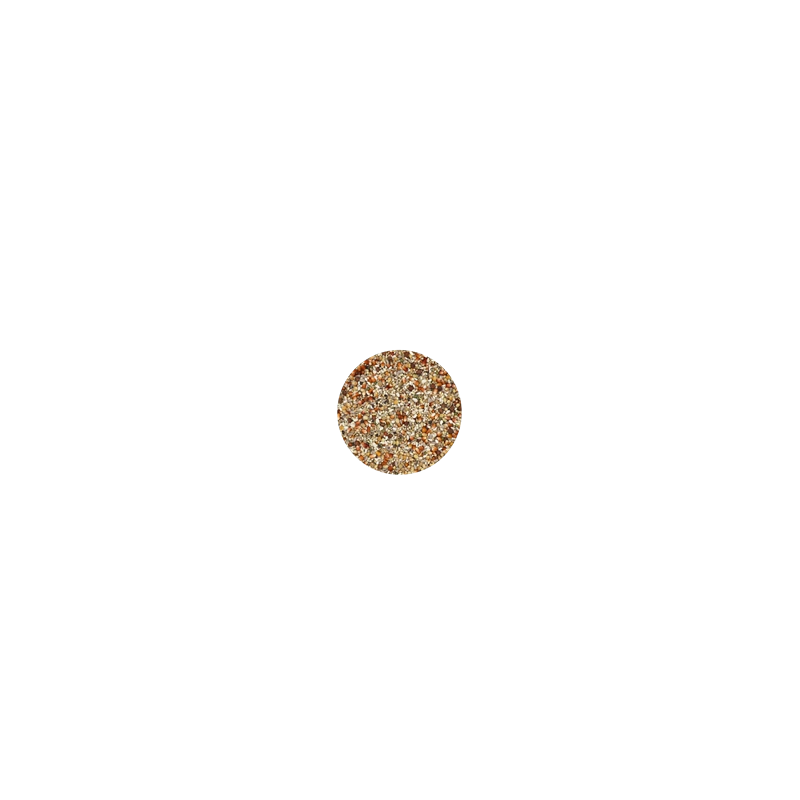maïs rouge 15%, petit maïs cribs 10%, graines de soja toasté 5%, maple peas 4%, vesces 2%, lentilles 3%, katjang idjoe 2%, froment blanc 5%, dari jaune 13%, cardy 12%, riz paddy 2%, riz pelé 4%, avoine pelée 5%, graines de tournesol pelé 8%, chanvre 4%, millet jaune 2%, graines de lin jaune 1%, graines de colza noir 2%, graines de chardon-marie 1%